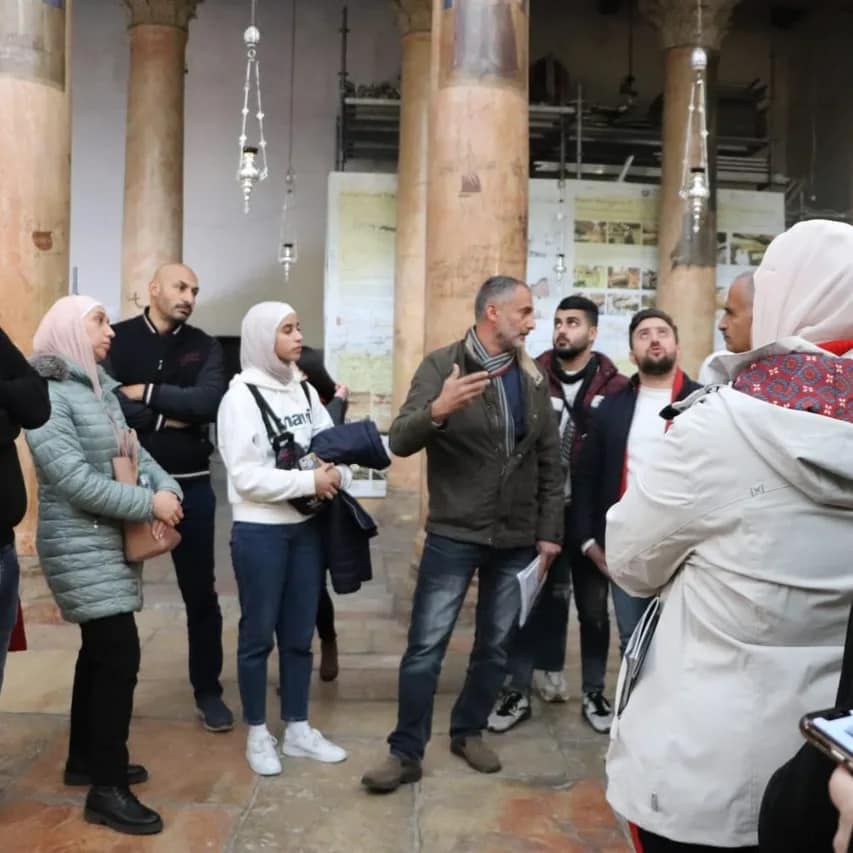 Experts were accompanied on the tour from the Center for Heritage Preservation in Bethlehem and the Hebron Rehabilitation Committee, Architects joined the tour; The sites were starting from Al-Najma Street, Dar Al Sabagh Diaspora Studies and Research Centre, Dar Al-Majosi and the Church of the Nativity, in addition to many traditional courtyards in the Old City, then finally the Morcos Nassar Palace.
