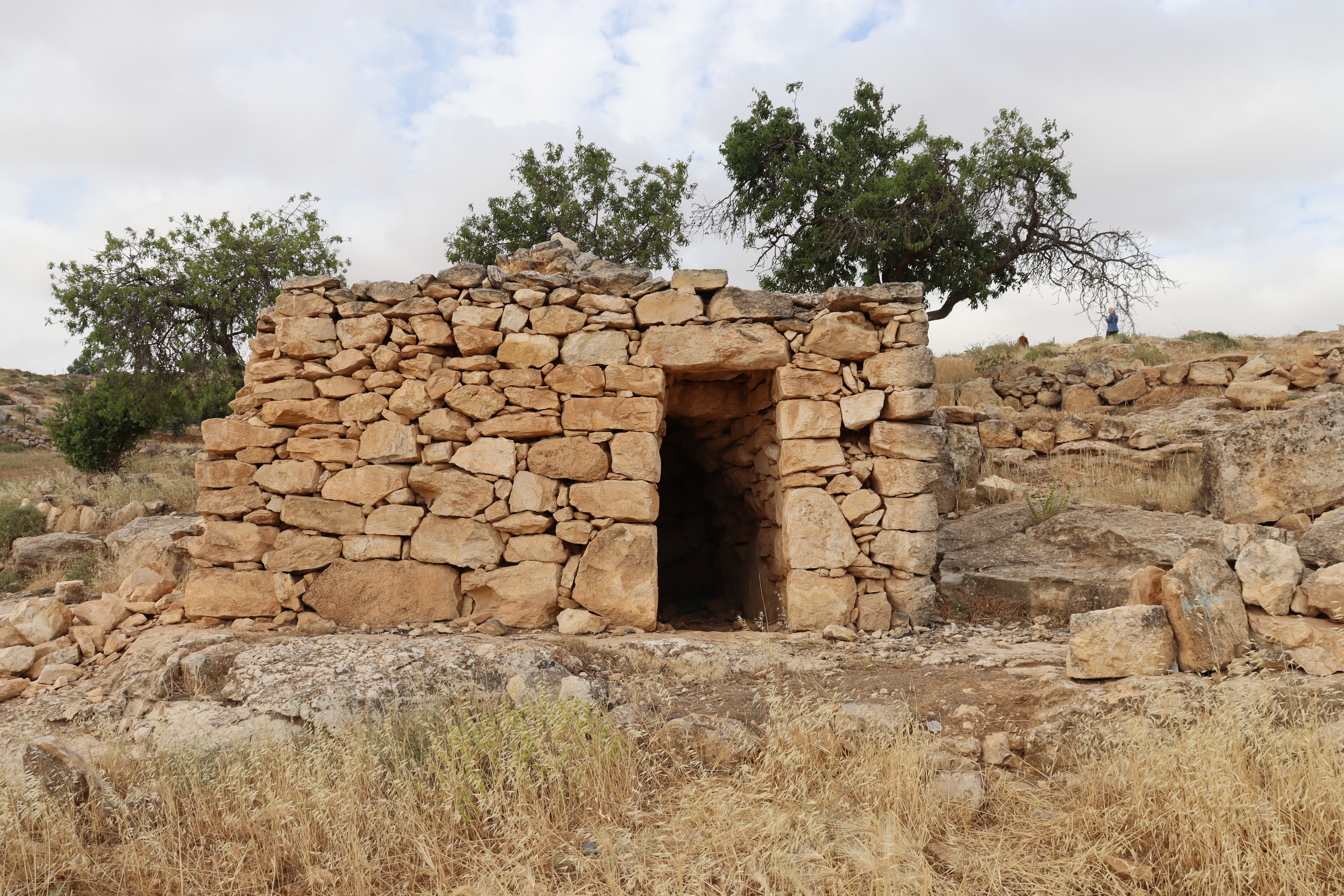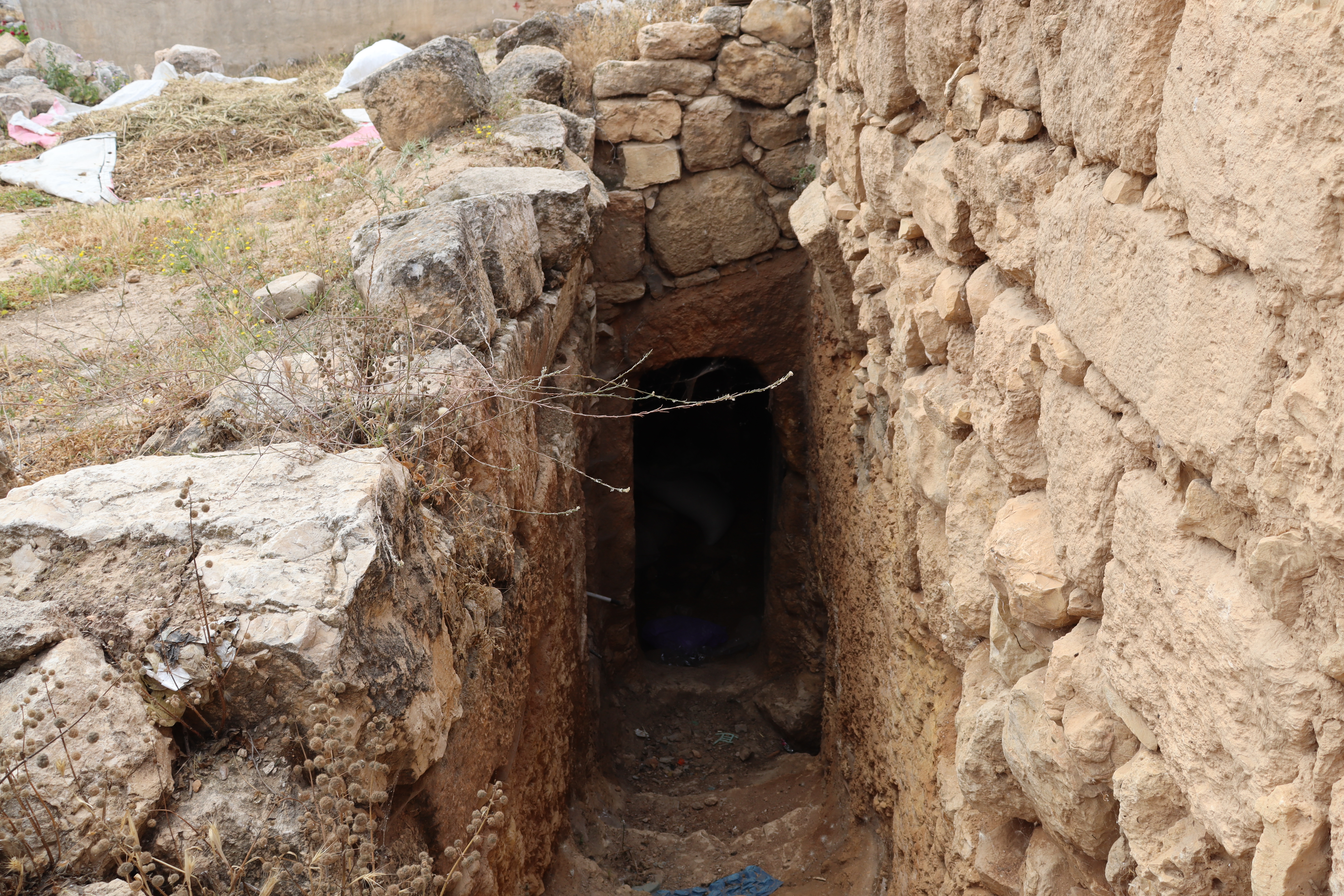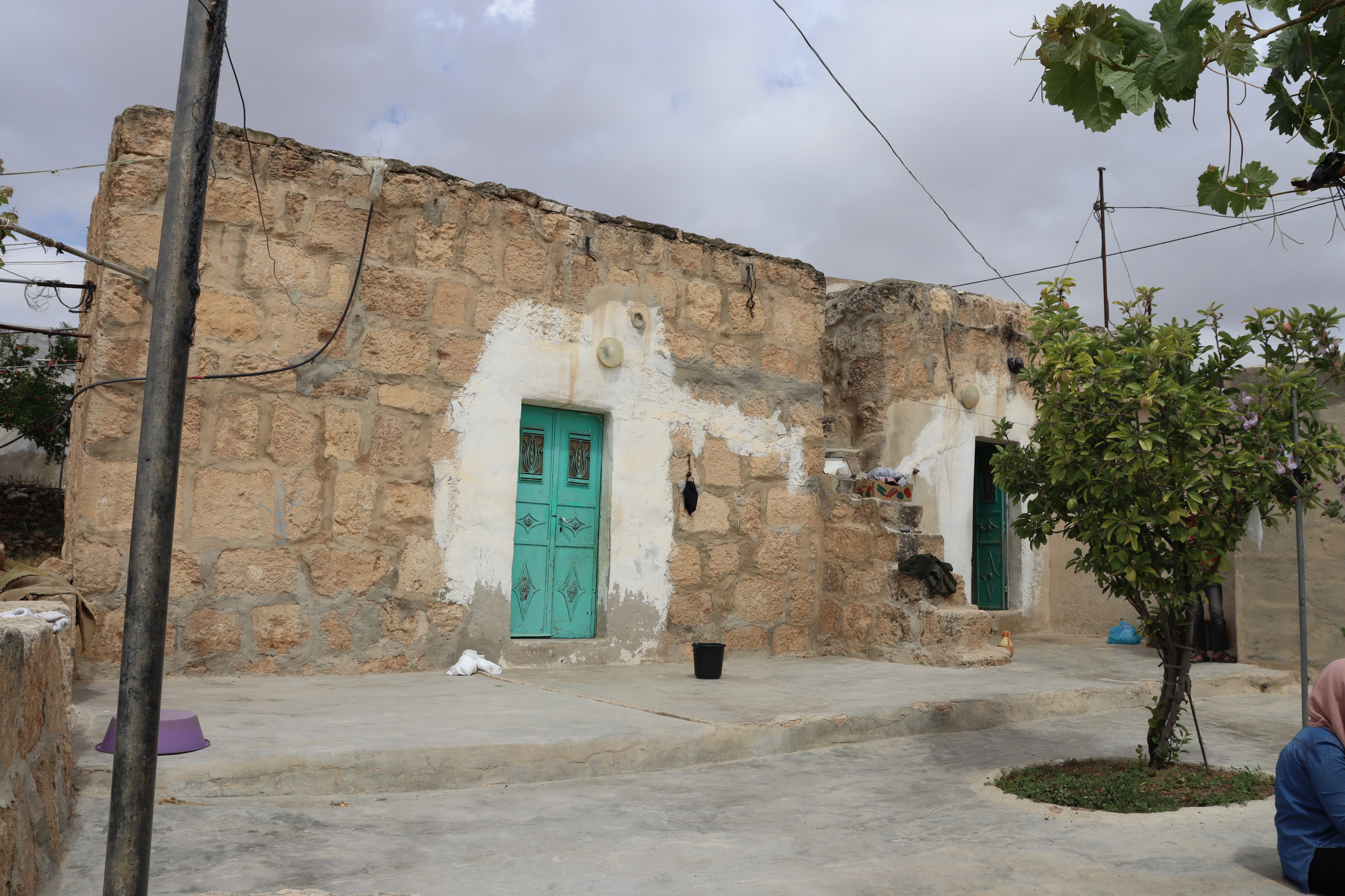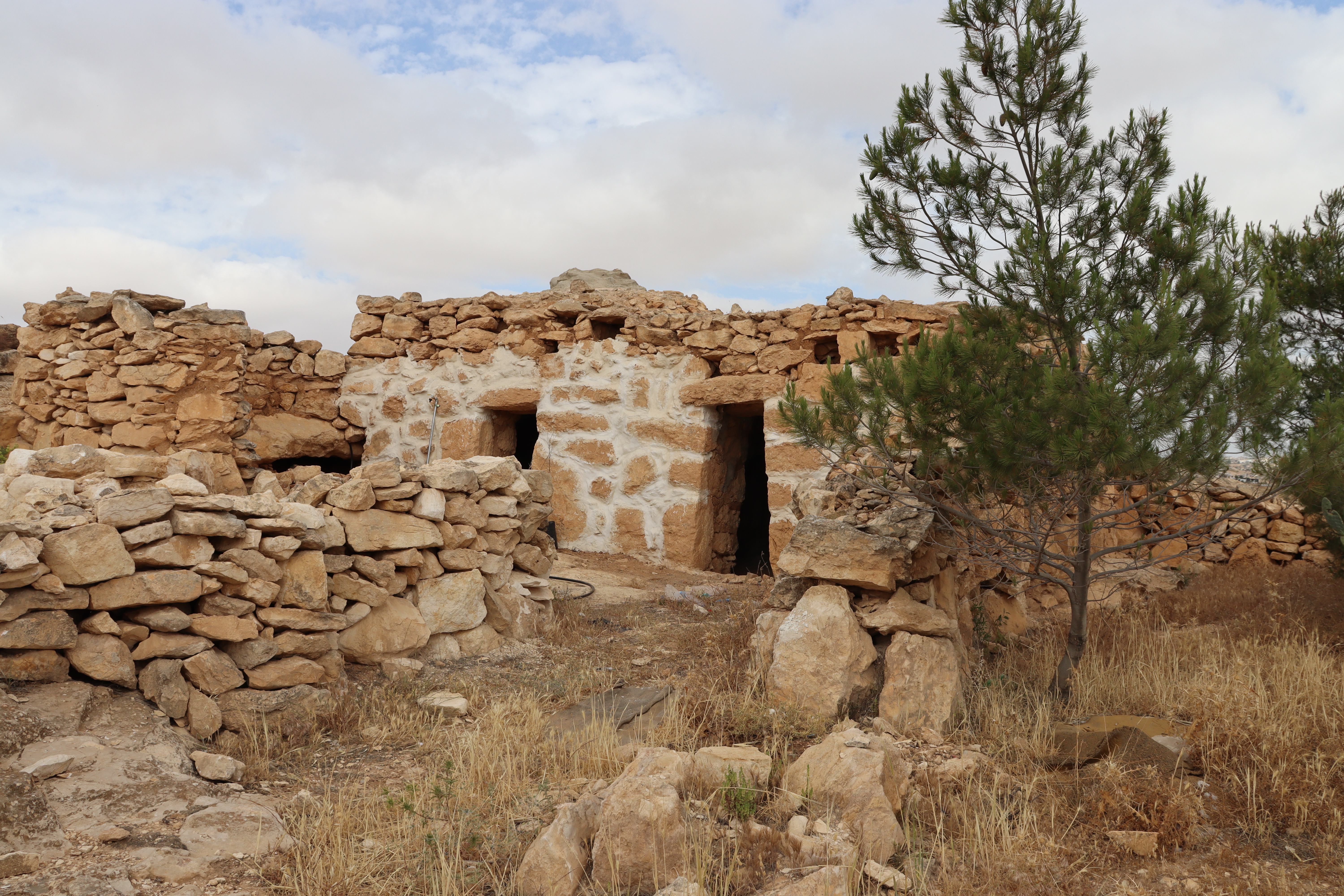 Kh. Al-Karmil: Its location at the end of an arid mountain, at the foot of the desert, makes it the entrance to the Naqab Desert. The traditional buildings represent the peasant way of life of the local community situated between the Roman Pond and the Byzantine Church. The elements of traditional heritage of Al-Karmil town are presented in chronological order, starting with the peasant houses that utilized ancient tombs for living. In later stages, caves were closed off with an outer stone façade, reflecting the architectural style known as “Laqta” in the southern part of Hebron. Then, during the Ottoman era, numerous traditional buildings were constructed. Throughout these periods, Palestinian farmers’ houses were used for cooking and animal husbandry, featuring structures such as Tabun, Saqaef and Tor.