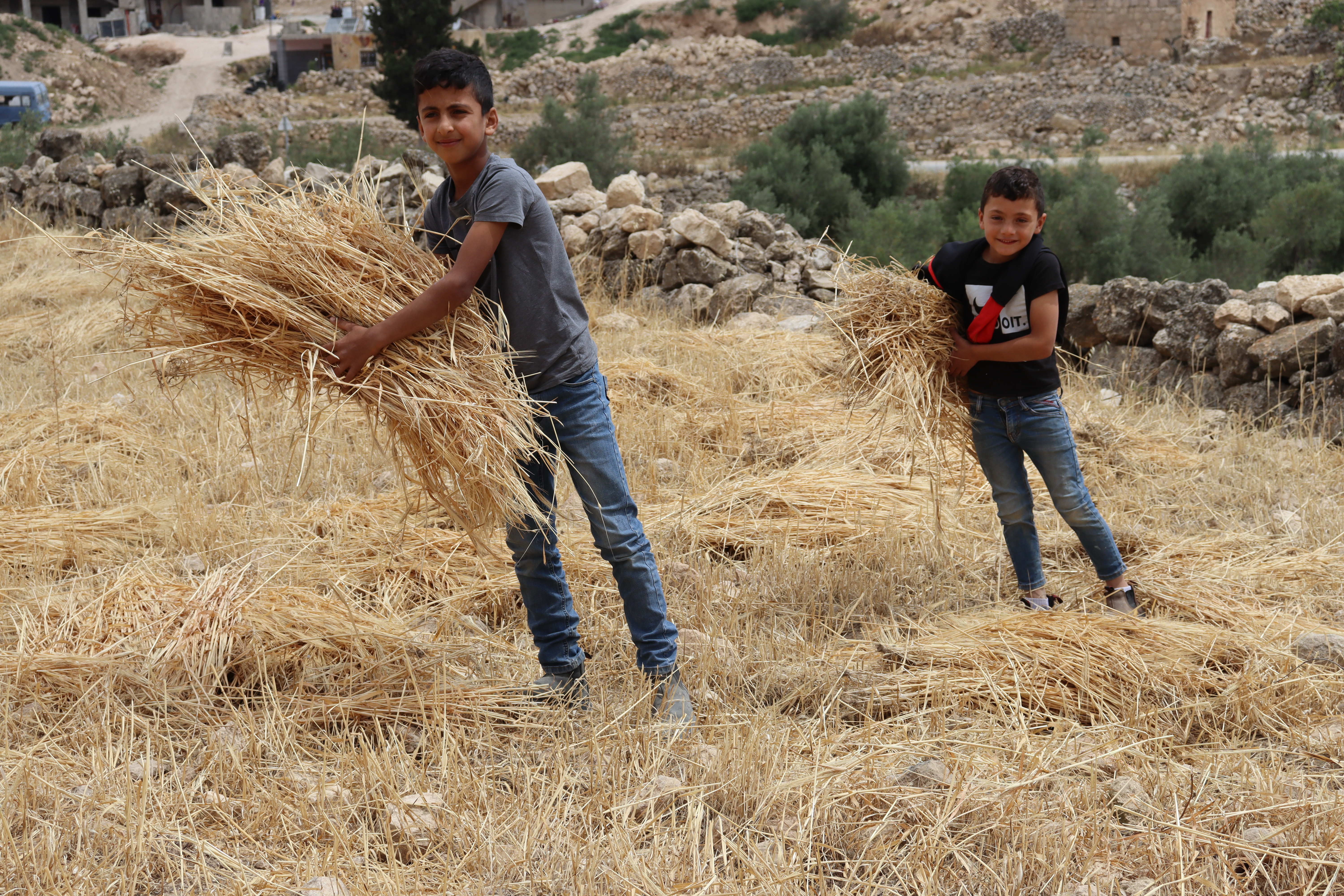 During the cereals harvesting season, Palestinian families unite in the fields and collectively engage in the process of gathering. This cherished tradition extends beyond mere labour, encompassing the singing of folk songs and the joyous sharing of communal meals. To beat the scorching heat, families depart from their homes at sunrise, working diligently to complete the harvest. As they commence their day, a small fire is kindled to brew tea, symbolizing the beginning of this time-honoured ritual.