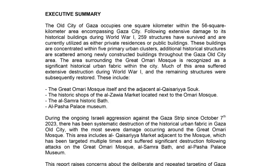 As you know, it is well known that Gaza’s cultural heritage is under severe threat from ongoing Israeli bombings. The historic Souk Al-Qaisariyya and other landmarks in Gaza’s Old City have suffered catastrophic damage.