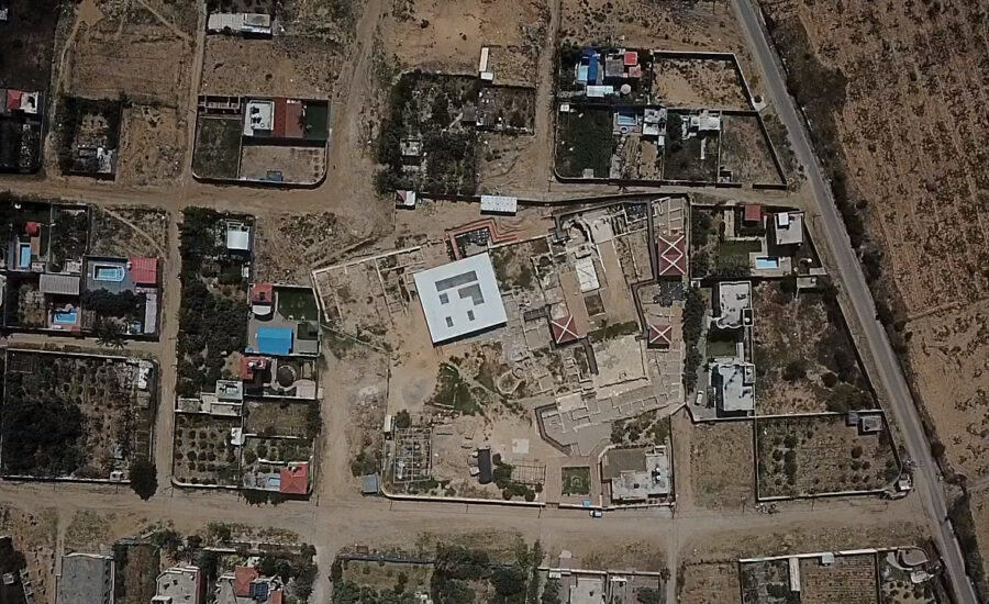 The ruins of Saint Hilarion Monastery are located in An-Nuseirat town, approximately 10 kilometers south of Gaza City and 10 kilometers from its port. The site occupies a strategic position at the crossroads of major trade and communication routes between Asia and Africa, making it a significant center for religious, cultural, and economic exchange during the Byzantine period. The monastery is depicted on the sixth-century Madaba Mosaic Map, labeled as Thauatha, underscoring its importance during that time.